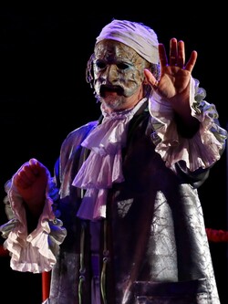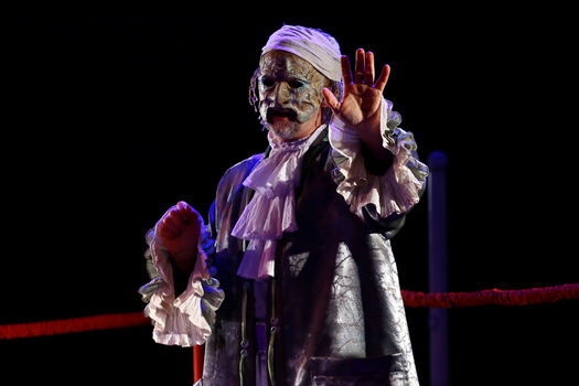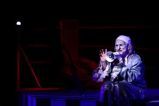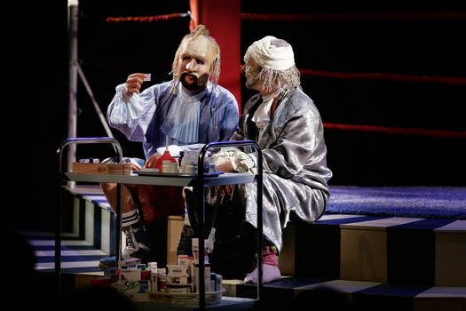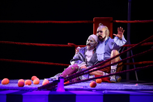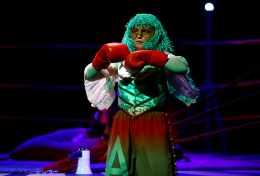 «Мнимый больной» – пьеса о дефиците любви, несвойственная Мольеру фарсовая история о человеческих пороках, её остроту постановщики решили передать, не прибегая к традиционным приемам театра кукол, а при помощи масок, которые, словно живые куклы, носят артисты. Тема манипуляций и домашней тирании раскрывается буквально на боксерском ринге – именно так – как поле боя, решено сценическое пространство, которое метафорически передает образ Дома, в котором нет любви, где каждый сражается только за себя.
